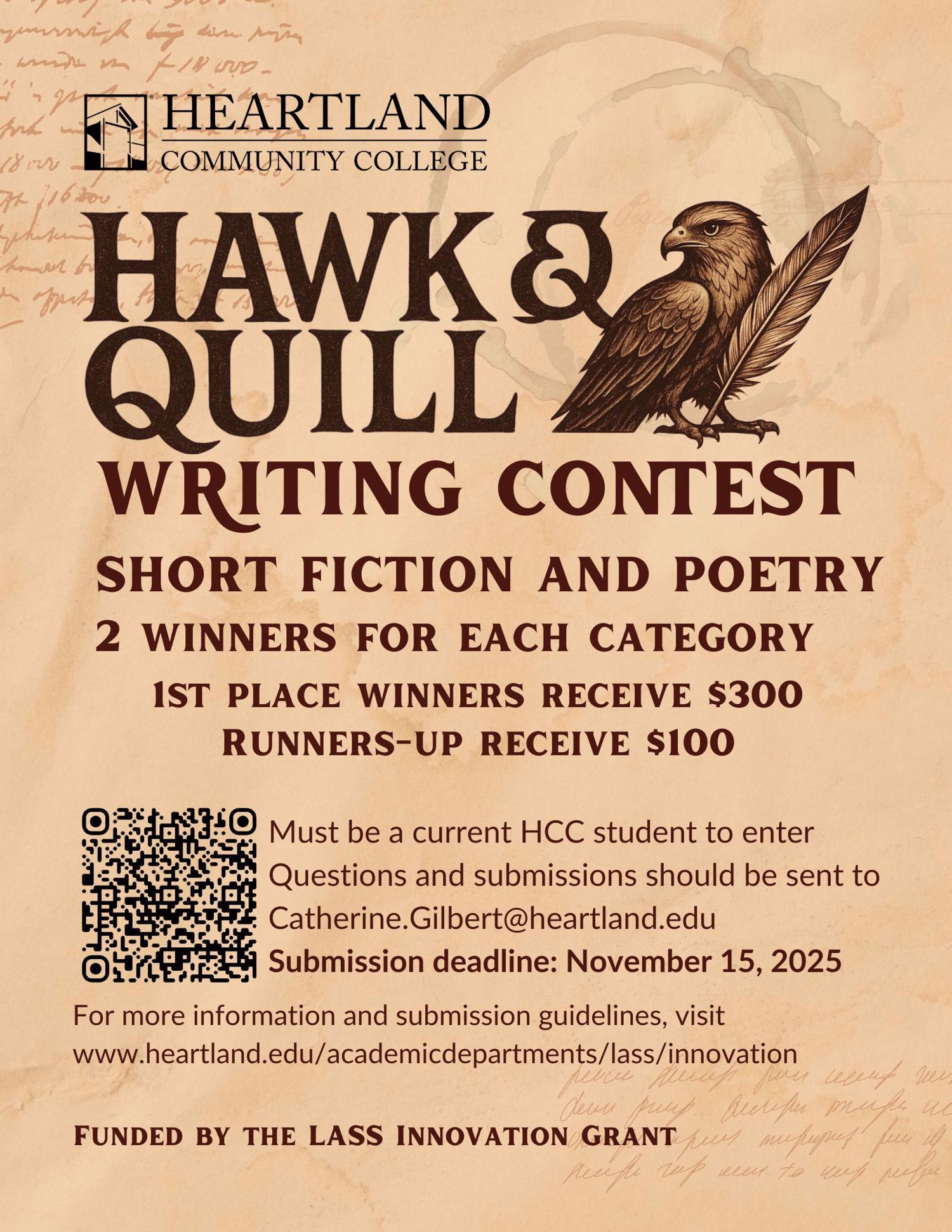 Hawk and Quill Writing ContestCategories: Short fiction and poetry Guidelines:
